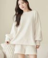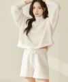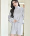 【トップス】 タートルネック 着丈(前):50cm、身幅:62cm、裾幅:62cm、袖丈:51cm、首幅:21.5cm Vネック 着丈(前):55cm、身幅:62cm、裾幅:60cm、袖丈:51cm Uネック 着丈(前):65cm、身幅:62cm、裾幅:60cm、袖丈:51cm 【ショートパンツ】 ウエスト:34cm、着丈:38cm、股下:9cm、裾幅:30cm ※平置きサイズはスタッフが採寸した実寸値となり、若干の誤差が生じる場合がございます。 ※対応身長は目安となり、実際の着用感には個人差がございます。 ※当商品には伸縮性がございます。