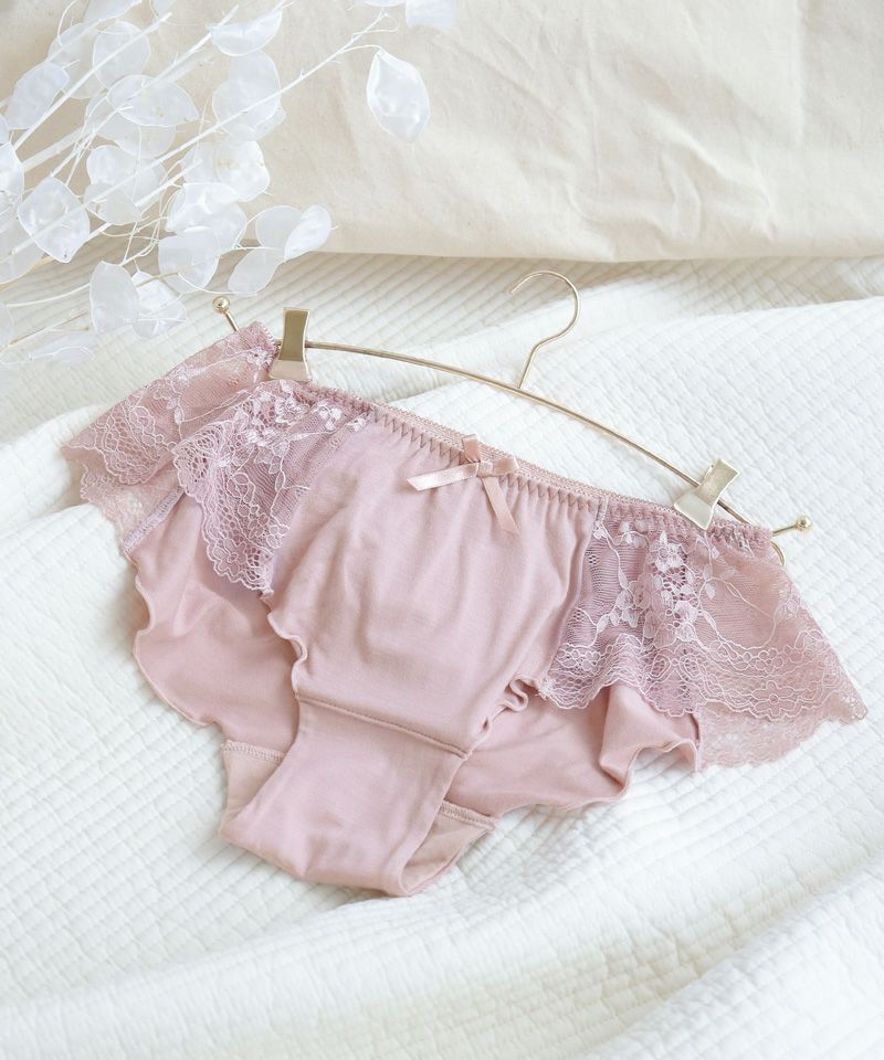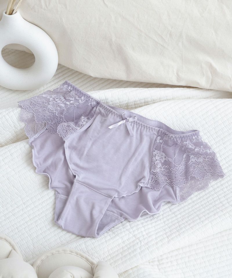 サイドに華やかなフラワーレースを施したフルバックショーツ。
