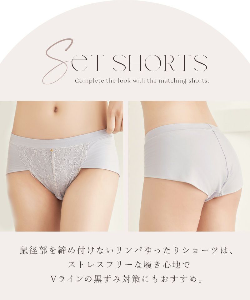 <ショーツ:ヒップ> M:87~95cm L:92~100cm ※ヒップサイズは目安となります。体型、着用感の好みによっても個人差がございますので予めご了承ください。