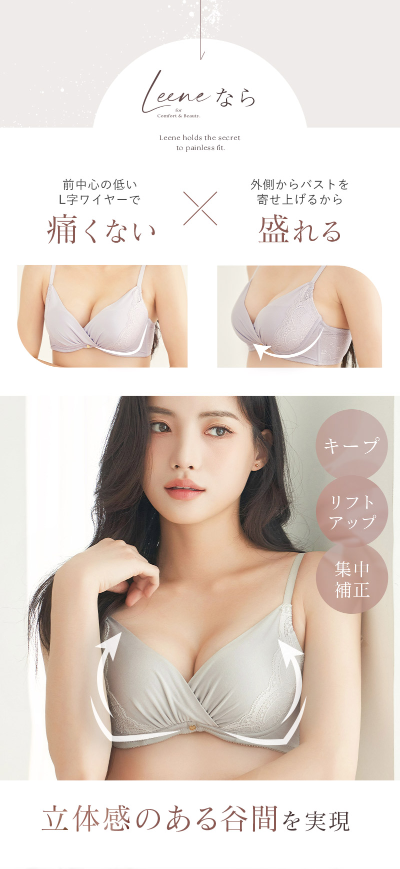 ストラップ取り外し:不可 ストラップ長さ調節:可 パッド:あり パッド取り外し:可 ワイヤー:あり ホック:2段3列