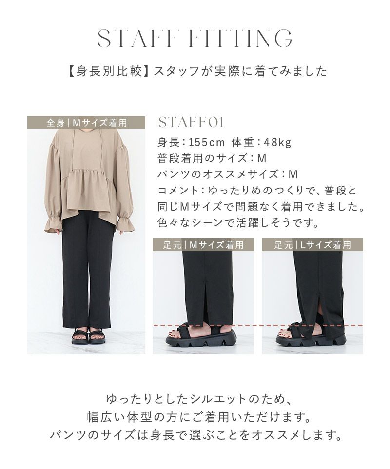 ※平置きサイズはスタッフが採寸した実寸値となり、若干の誤差が生じる場合がございます。 ※対応身長は目安となり、実際の着用感には個人差がございます。