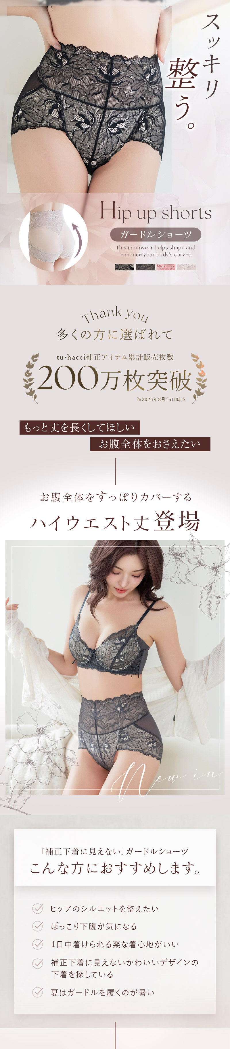 スッキリと股上の短いミドル丈は、短くても骨盤周りをしっかりサポート!