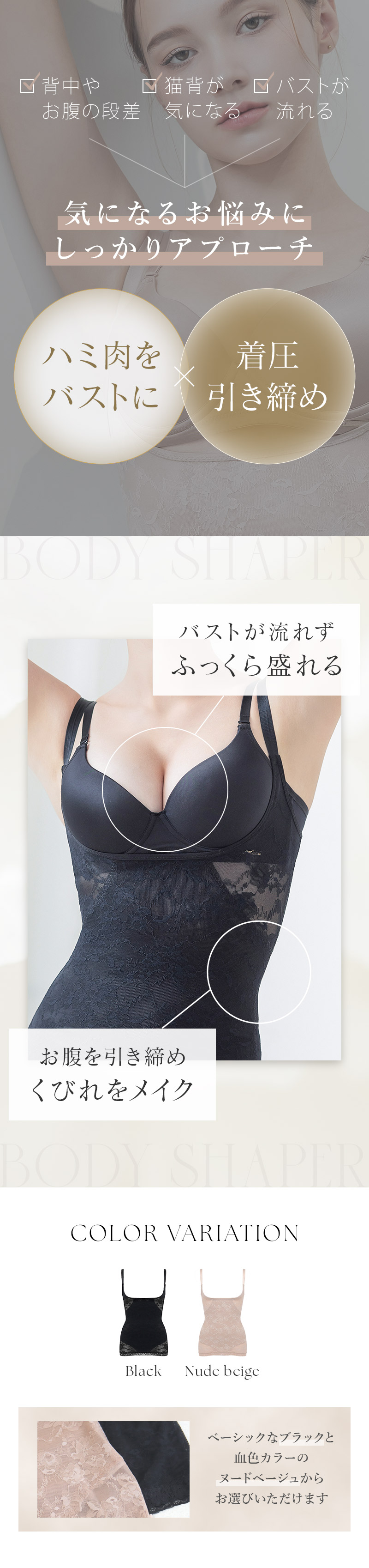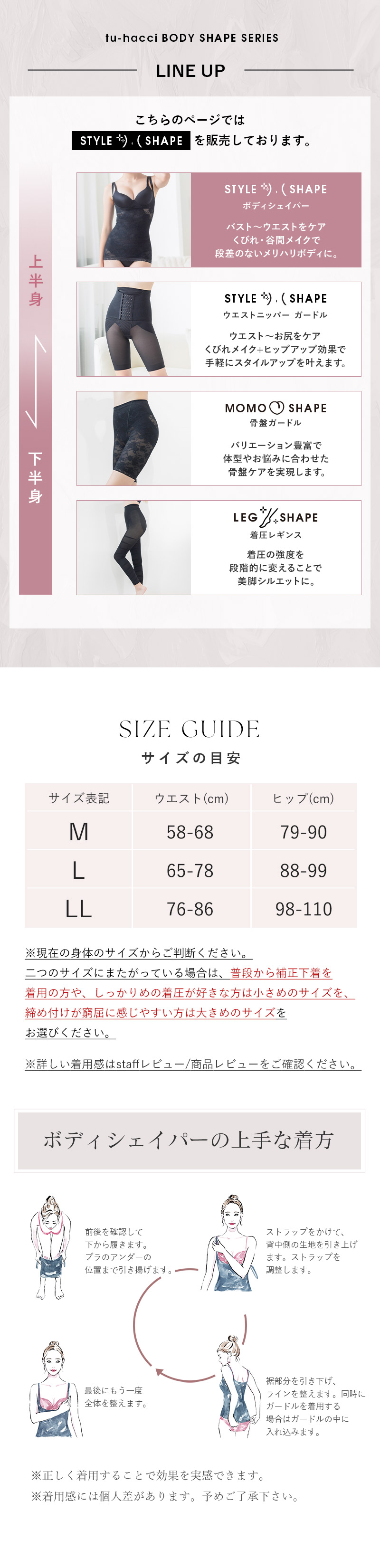 ストラップ取り外し:不可 ストラップ長さ調節:可 ホック:なし(かぶりタイプ) 透け感:若干あり 素材:ナイロン、ポリウレタン ボディシェイパー単品