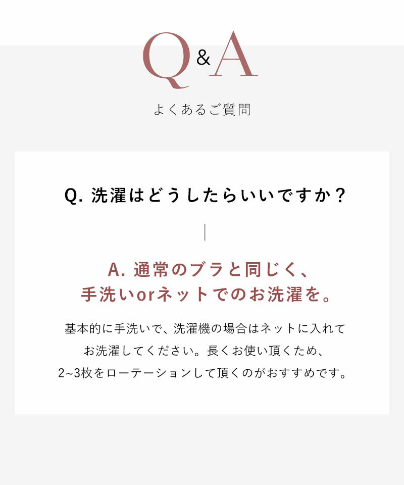 ストラップ取り外し:不可 ストラップ長さ調節:可 ワイヤー:なし パッド:あり ホック:(65M/65L/70M/70L)2段4列 ホック:(65LL/70LL/75M/75L/75LL/80M/80L/80LL/85M/85L/90M/90L/90LL)3段4列 ※上記サイズのホック数を2段4列から3段4列へ変更いたしました。在庫は順次入れ替えとなり、お選びいただけませんのでご了承ください。 透け感:なし 素材:コットン・ナイロン・その他 ナイトブラ単品