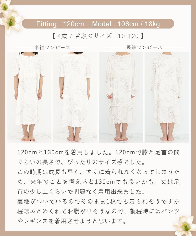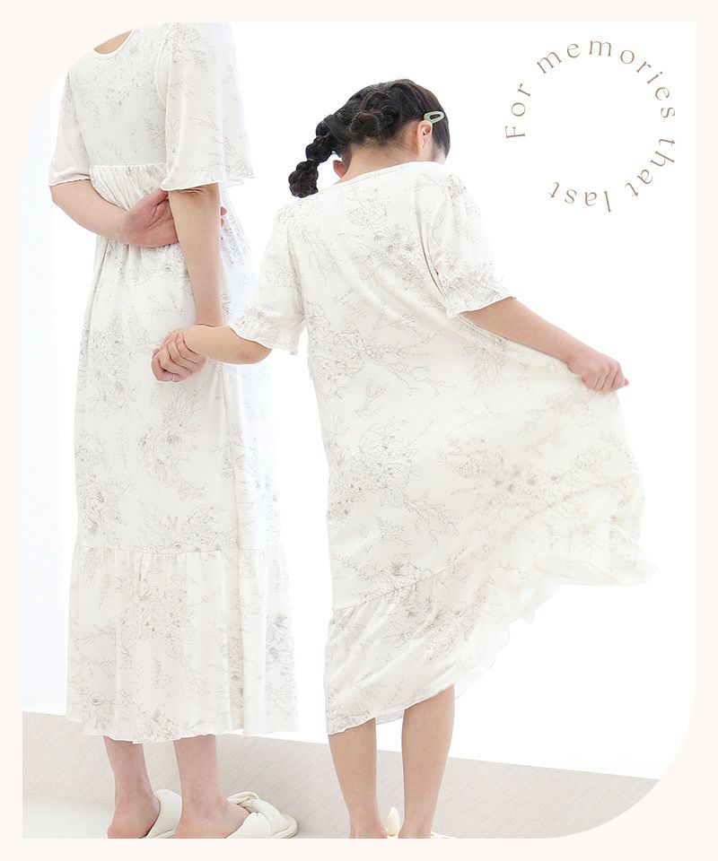 《ラクシアスリープ》ナイトブラワンピース 半袖ロング丈 無地/花柄