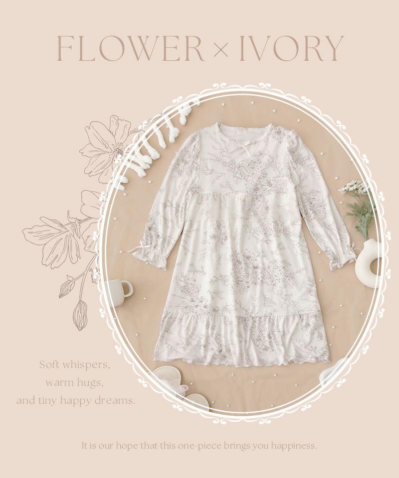 《ラクシアスリープ》ナイトブラワンピース 長袖マキシ丈 無地/花柄