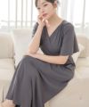 《ラクシアスリープ》ナイトブラワンピース 半袖ロング丈 無地/花柄
