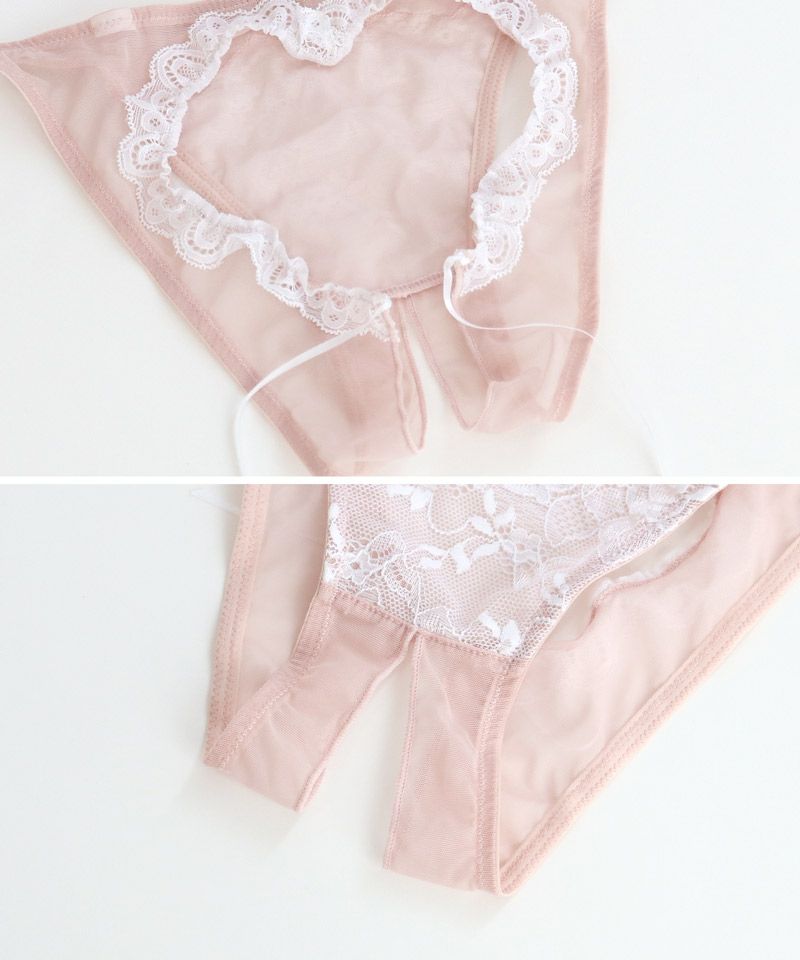 ランジェリー集めが趣味なのですが、紐パン+オープンクロッチが可愛いすぎると思って即購入しました! ピンクを選びましたが落ち着いたピンクで、全体的に透け感もあってセクシーすぎて可愛いすぎます!
