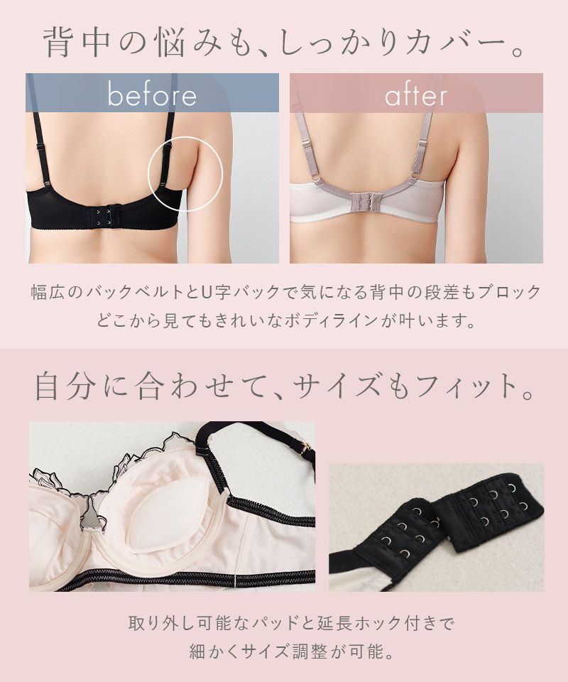 ・幅広のバックベルトとU字バックで気になる背中の段差もブロック