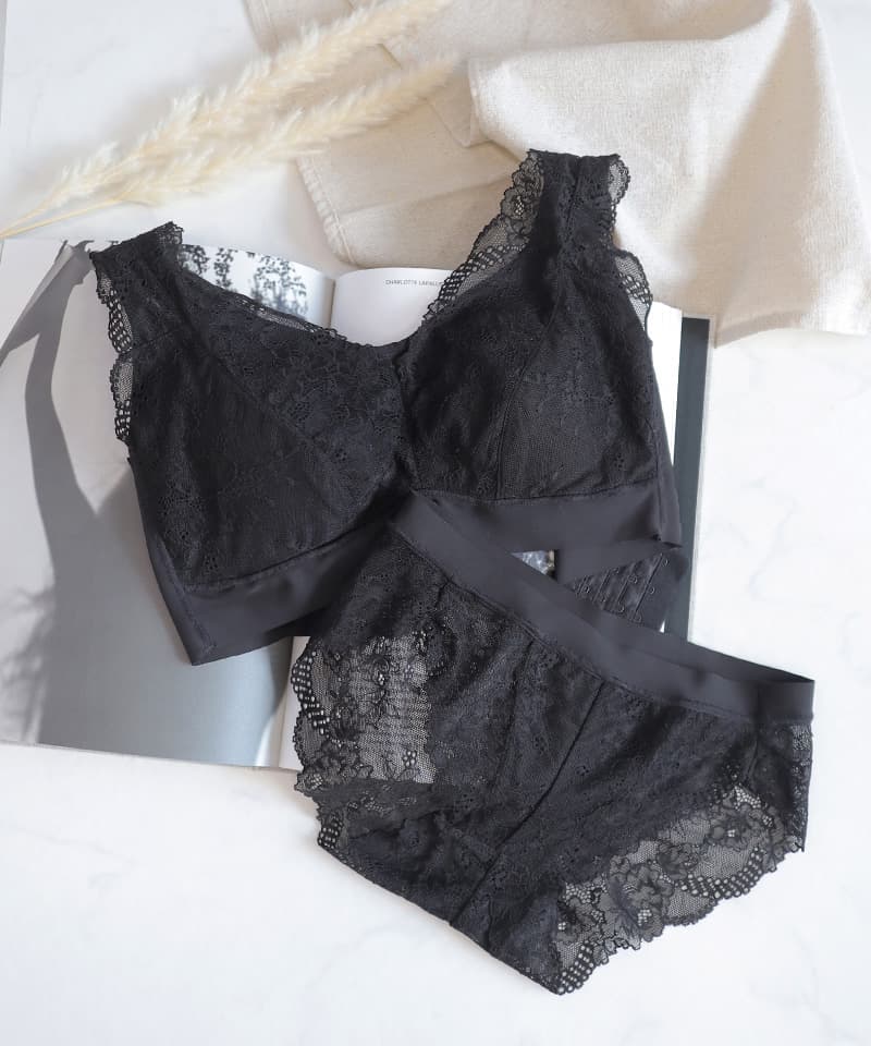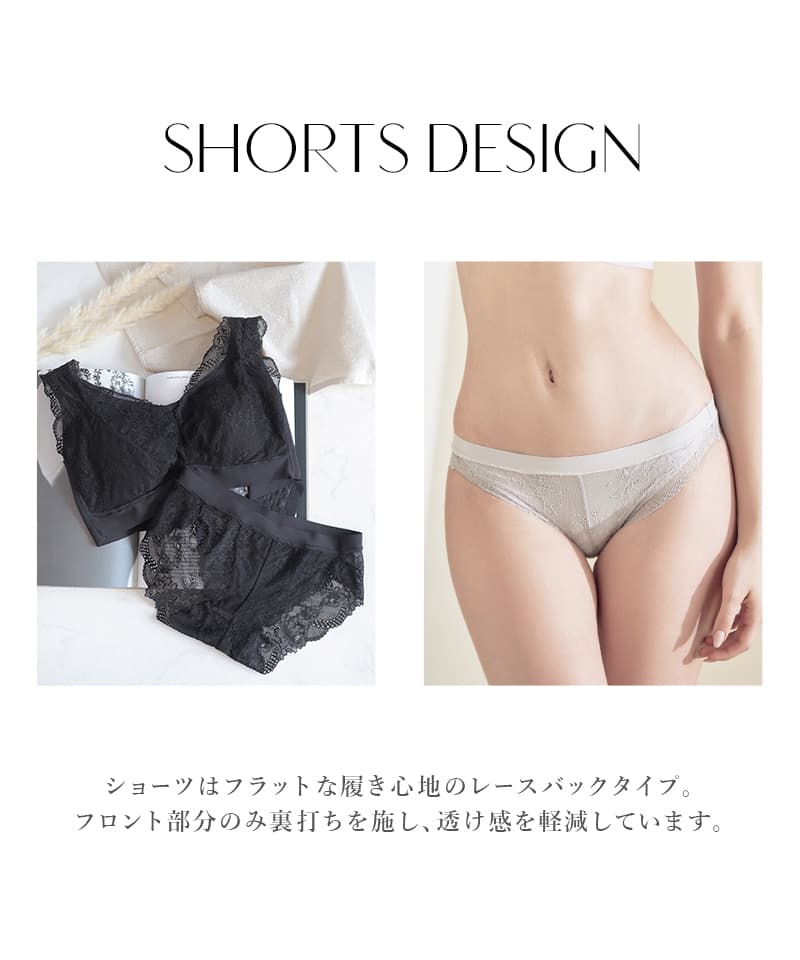 お揃いショーツはフラットな履き心地のレースバックタイプ。