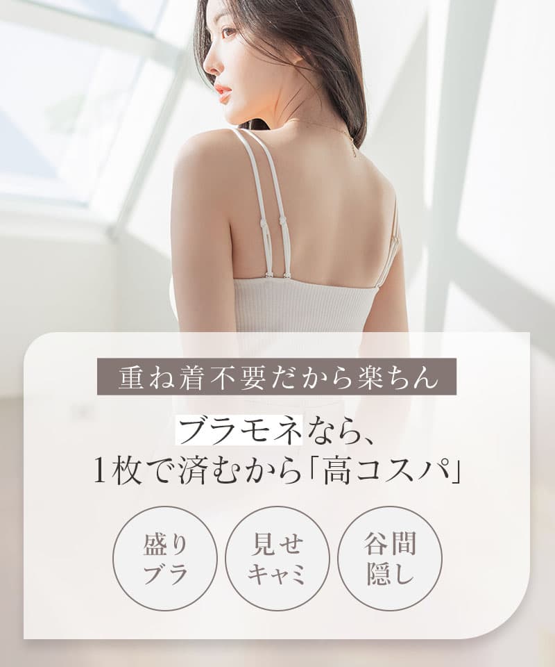 カップ付きリブタンクトップ スクエアネック型《BRAmone Basic Natural》 #ノンワイヤー #ナチュラル盛り #ブラモネナチュ盛り 20%OFF ¥ 2,384 税込 お気に入りに登録する