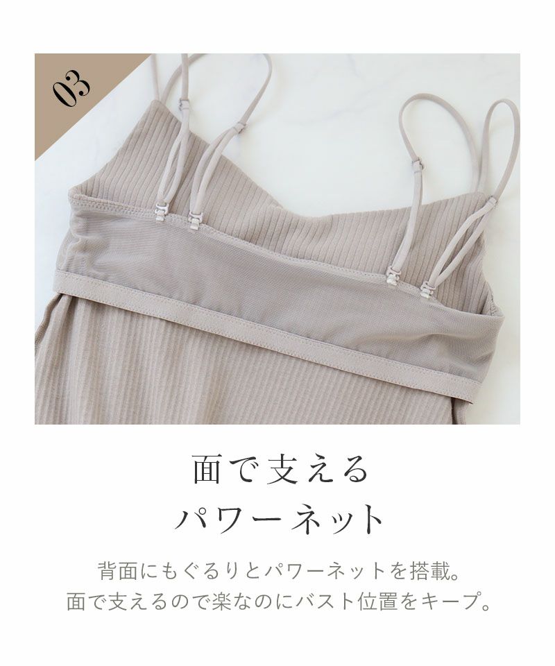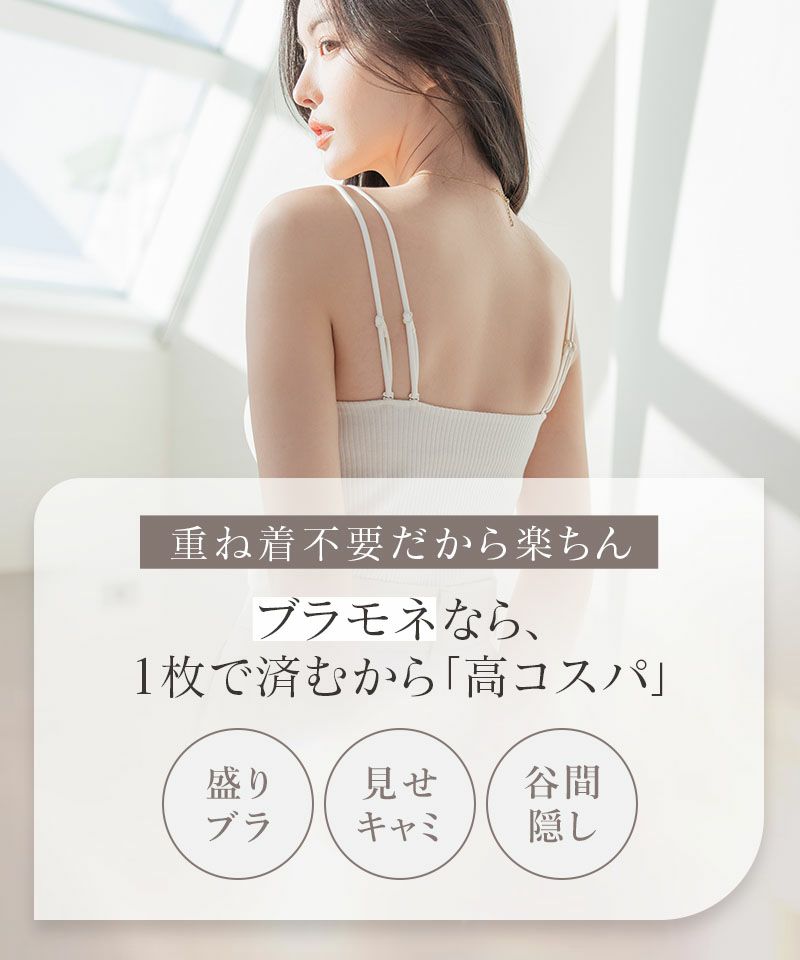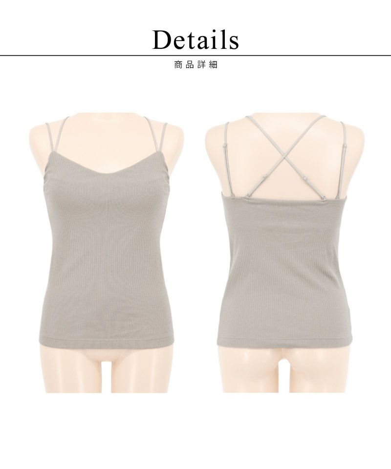 ストラップ取り外し:不可 ストラップ長さ調節:可 パッド取り外し:不可 ワイヤー:なし 透け感:キナリ若干あり 素材:綿、ポリウレタン、その他 キャミソール単品