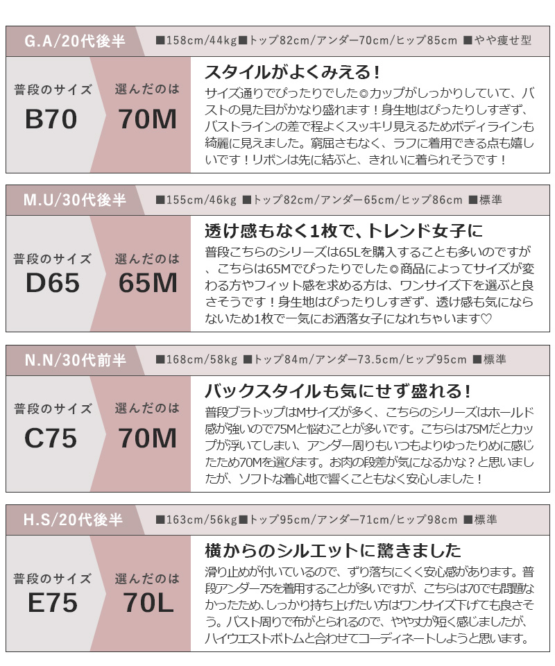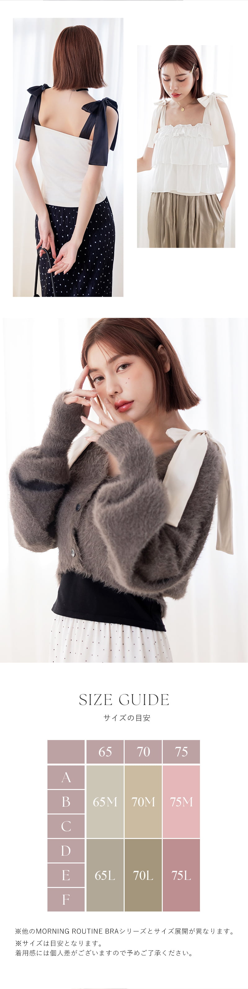 65M:A65 B65 C65 65L:D65 E65 F65 70M:A70 B70 C70 70L:D70 E70 F70 75M:A75 B75 C75 75L:D75 E75 F75 ※対応サイズは目安となり、実際の着用感には個人差がございます。