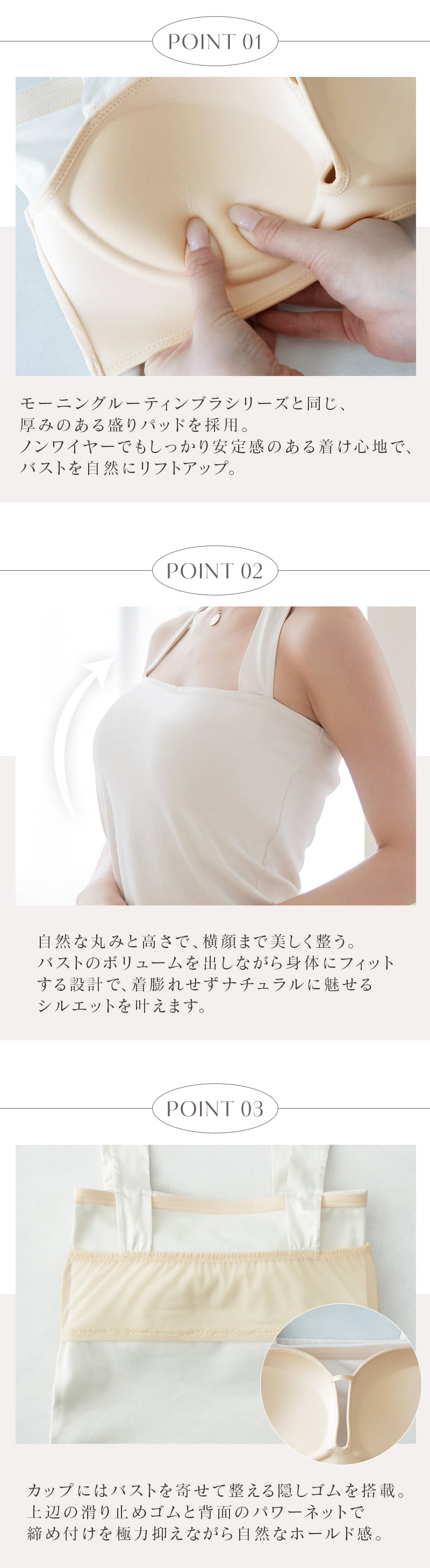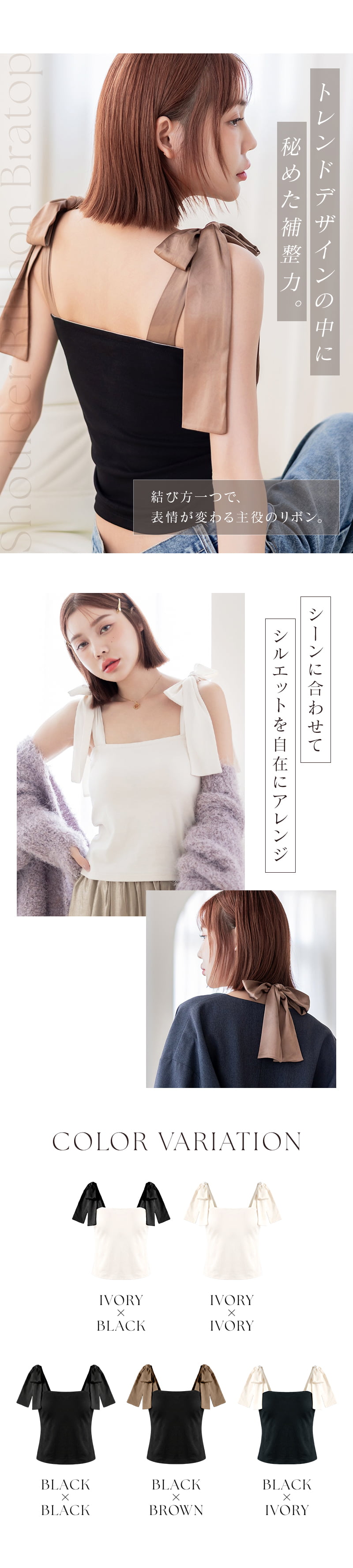 肩リボン取り外し:不可 肩リボン長さ調節:可 パッド:有り(内蔵型) パッド取り外し:不可 ワイヤー:無し ホック:無し