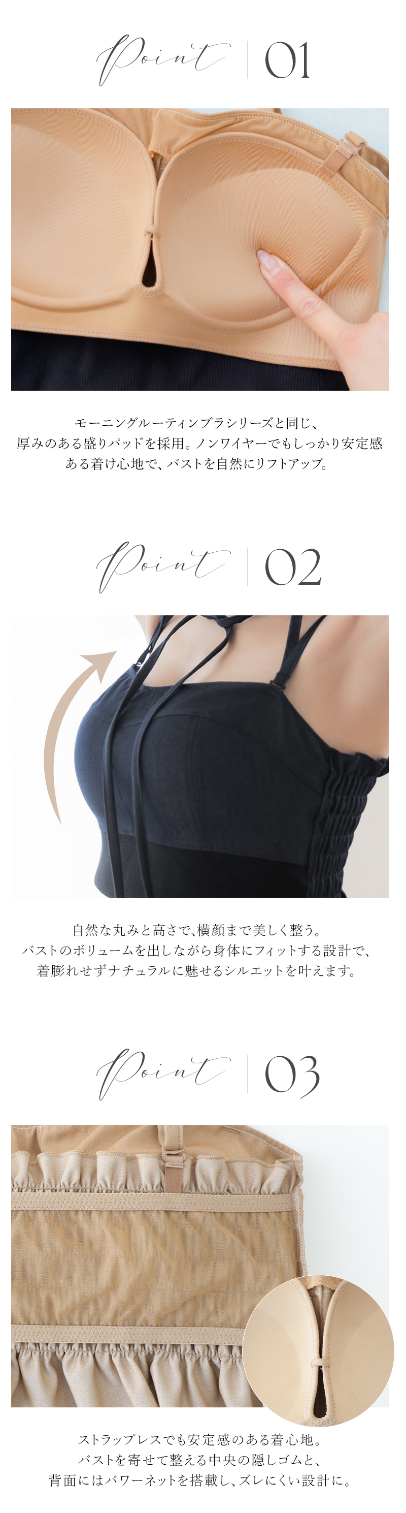 ストラップ取り外し:可 ストラップ長さ調節:有 パッド:有 付属品:取り外し可能なチョーカー付き ワイヤー:無 ホック:無 透け感:無 素材:ポリエステル・レーヨン・その他