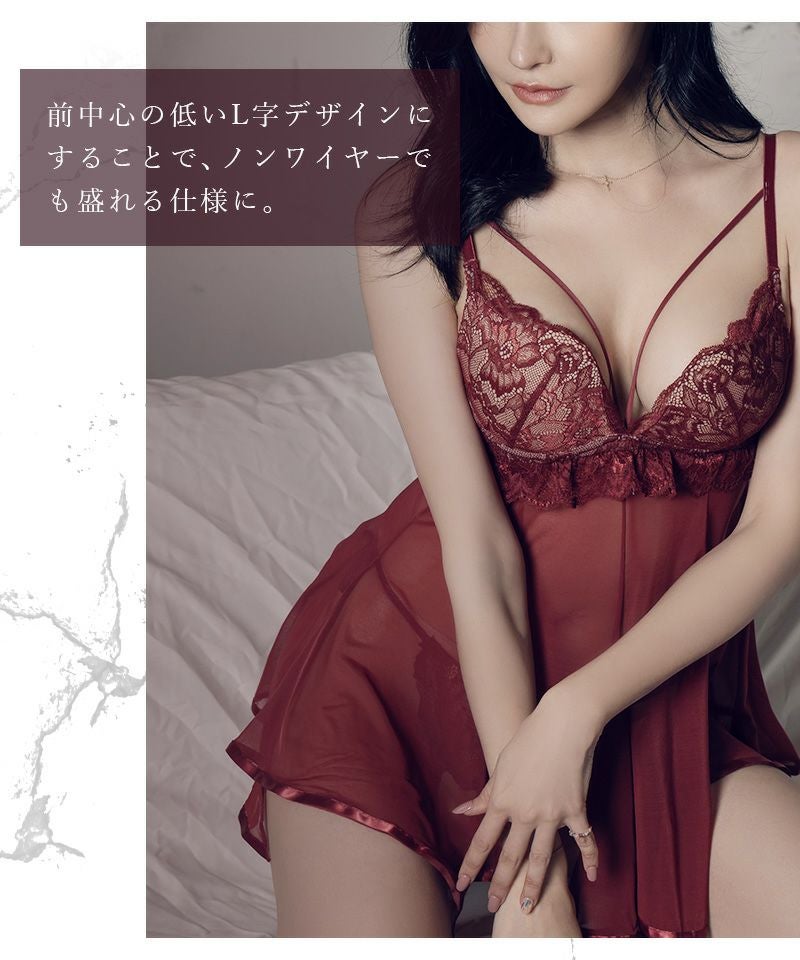 ストラップ取り外し:不可 ストラップ長さ調節:可 パッド:有(取り外し可) ワイヤー:無 ホック: 2段3列 透け感:カップ部分以外あり 素材:ナイロン・ポリエステル・その他 ベビードール単品