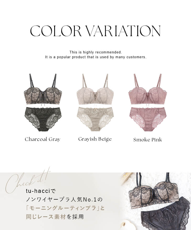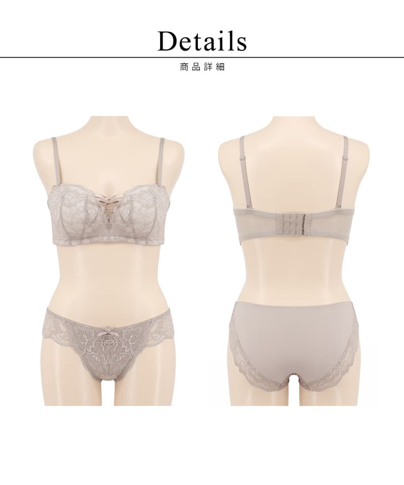 ストラップ取り外し:可 ストラップ長さ調節:可 パッド:あり(内蔵型) パッド取り外し:不可 ワイヤー:なし ホック(※A70/A75/B65/B70/B75/B80/C65/C70/C75/D65/D70/E65):3段4列 ホック(※C80/D75/D80/E70/E75/E80/F65/F70/F75):4段4列 ブラ透け感:なし ショーツ透け感(Aタイプ):無し ショーツ透け感(Bタイプ):バック有り 素材:ナイロン、ポリウレタン、その他 ブラ&ショーツ / 計2点セット