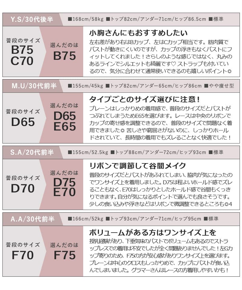 A70/ショーツM A75/ショーツM A75/ショーツL B65/ショーツM B70/ショーツM B75/ショーツM B75/ショーツL B80/ショーツL C65/ショーツM C70/ショーツM C75/ショーツM C75/ショーツL C80/ショーツL D65/ショーツM D70/ショーツM D75/ショーツM D75/ショーツL D80/ショーツL E65/ショーツM E70/ショーツM E70/ショーツL E75/ショーツL E80/ショーツL F65/ショーツM F70/ショーツM F70/ショーツL F75/ショーツL ※「ブラサイズ/ショーツサイズ」となっております。 上記以外の組み合わせはお選びいただけませんのでご了承ください。