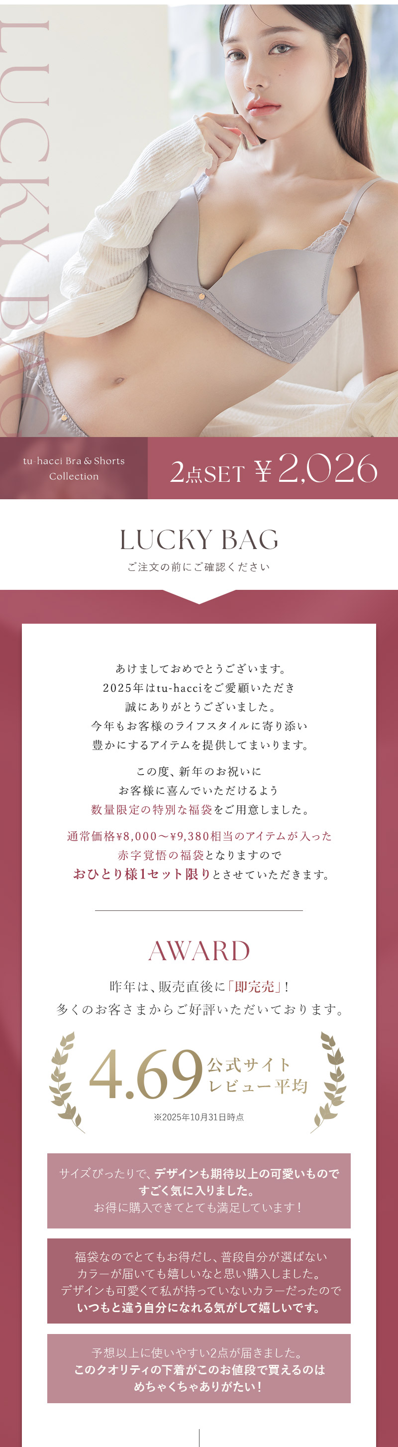 2026福袋 《デザインおまかせ》ブラ&ショーツ2点セット