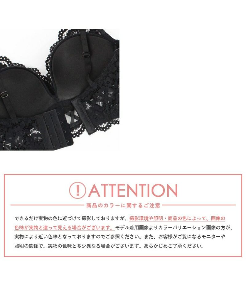下厚上薄のふんわりカップ、肩から繋げたレースで安定感のある着け心地。