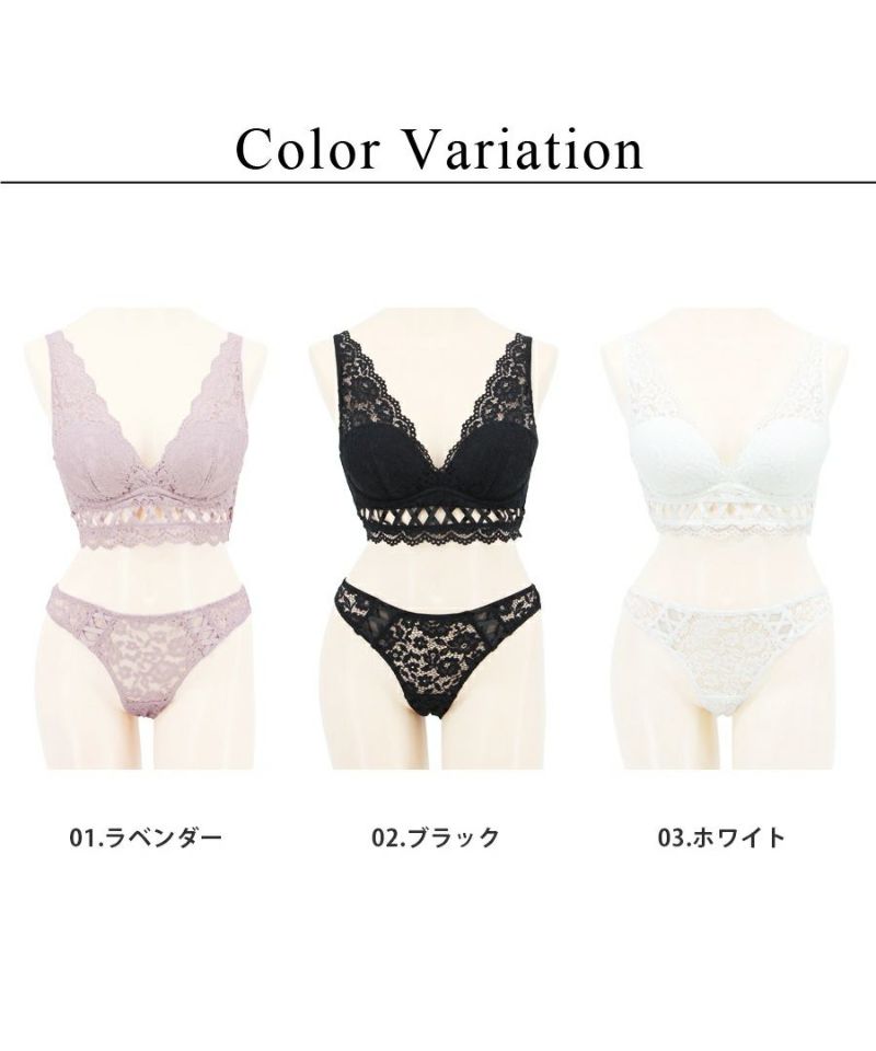 お揃いショーツは透け感を楽しめる総レースタイプ。
