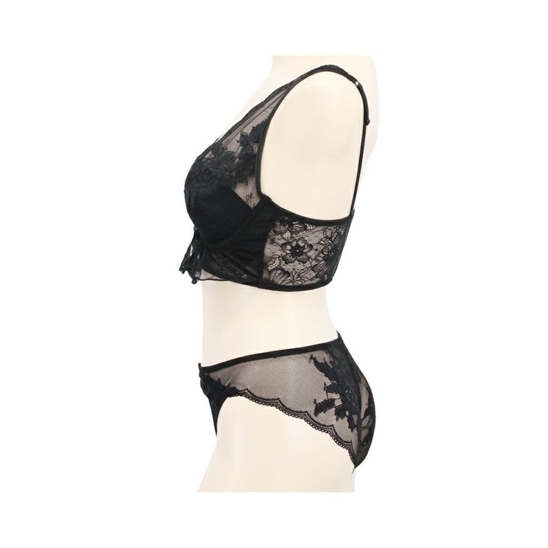 お揃いショーツは透け感を楽しめる総レースタイプです。