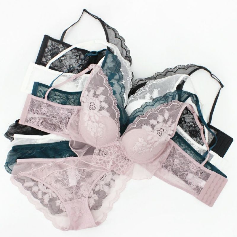 肩まで続くクラシカルな刺繍レースが包み込み、ふんわり軽いのに安定感のある着け心地。