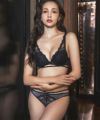 お揃いショーツはシースルー生地とレースを組み合わせてセクシーに。