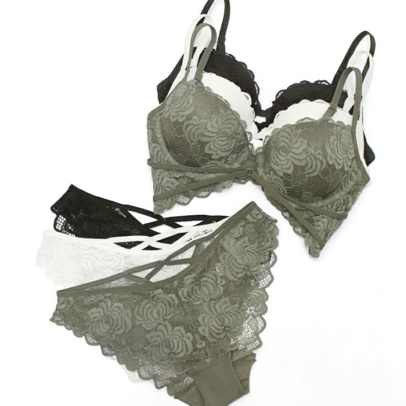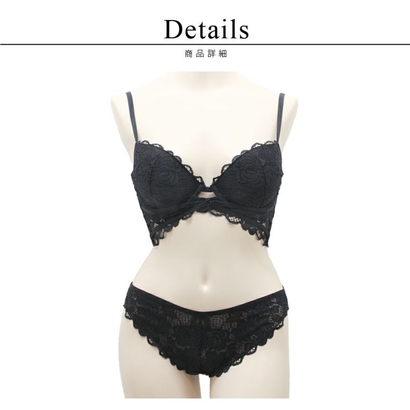 シックなフラワー柄のストレッチレースを使用した3/4カップブラジャー。