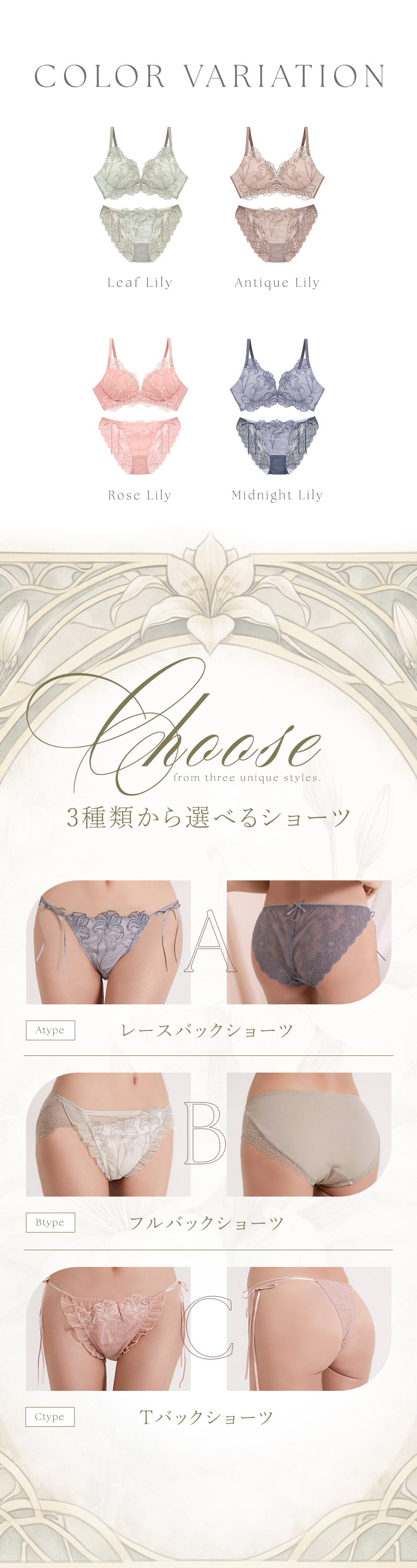 E65/ショーツM E70/ショーツM E70/ショーツL E75/ショーツL E80/ショーツL E80/ショーツXL F65/ショーツM F70/ショーツM F70/ショーツL F75/ショーツL ※「ブラサイズ/ショーツサイズ」となっております。 上記以外の組み合わせはお選びいただけませんのでご了承ください。