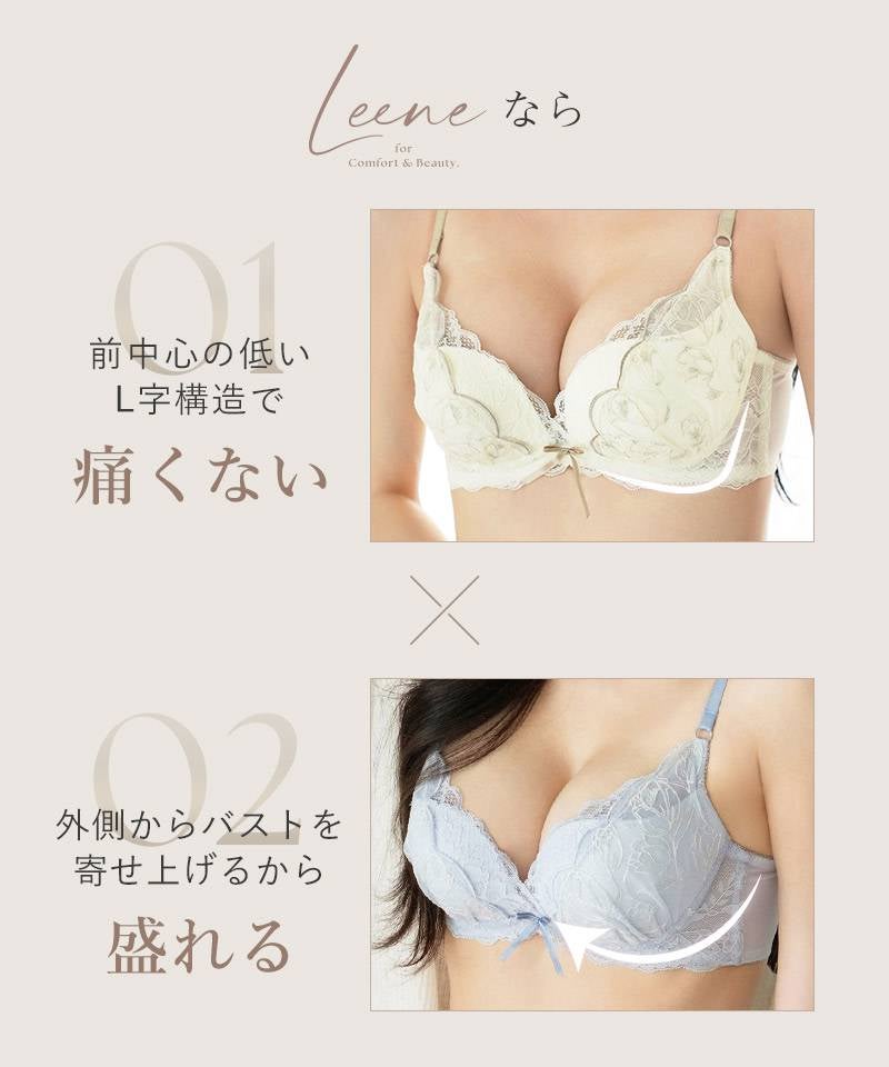他の画像を見る お気に入りに登録する 【EFGカップ】Leene サクラレース ノンワイヤーブラ&ショーツ 通常価格 ¥ 5,780 ¥ 5,202 税込 #ノンワイヤー #谷間メイク 10%OFF #L字ワイヤー