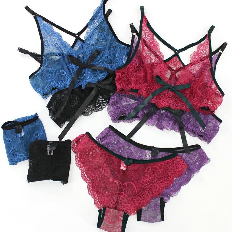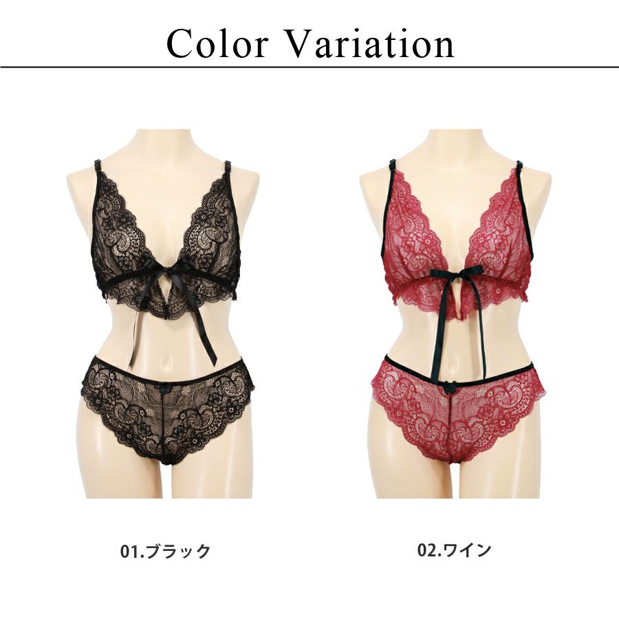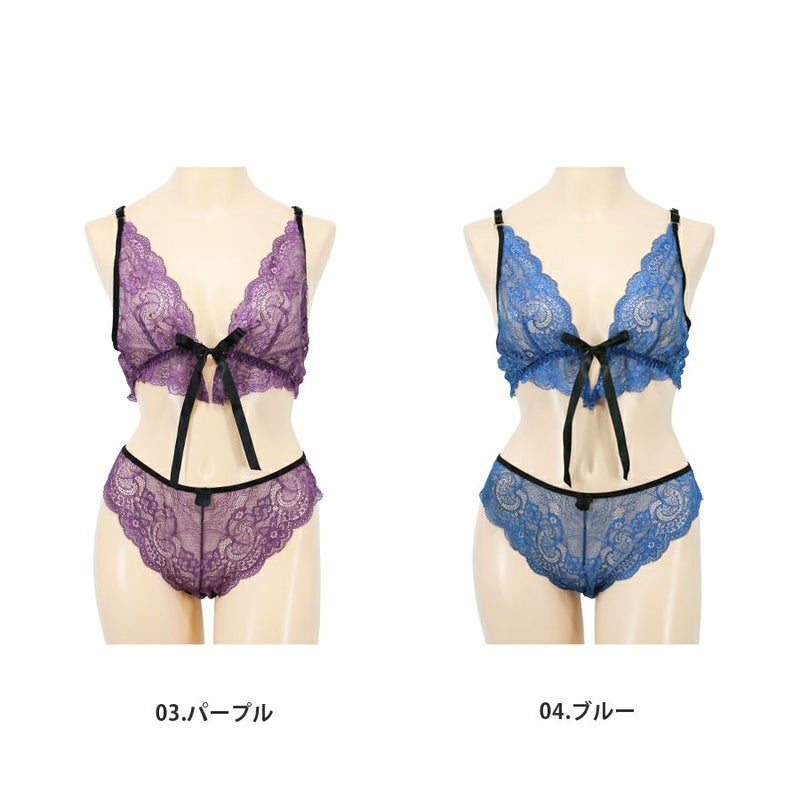 ノンパテッド フロントリボン総レースブラレット&ショーツ