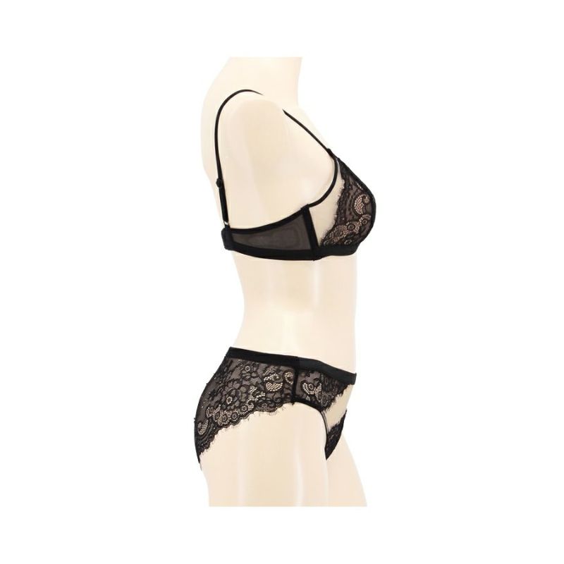 お揃いショーツもブラと同様、レースとメッシュ部分、透け感の違いを楽しんで。
