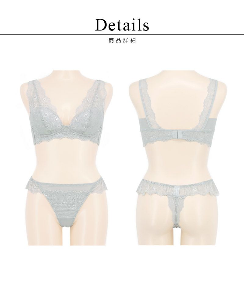 ストラップ取り外し:不可 ストラップ長さ調節:不可 パッド:なし ワイヤー:なし ホック: 2段3列 素材:ナイロン、ポリエステル、その他 透け感:ブラ なし、ショーツ フロント以外あり モデル:165cm / M ブラ&ショーツ / 計2点セット