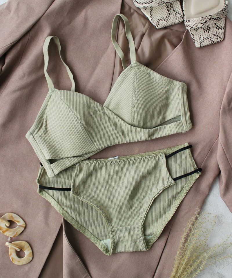柔らかな風合いのリブ素材が心地よいノンワイヤーブラ。