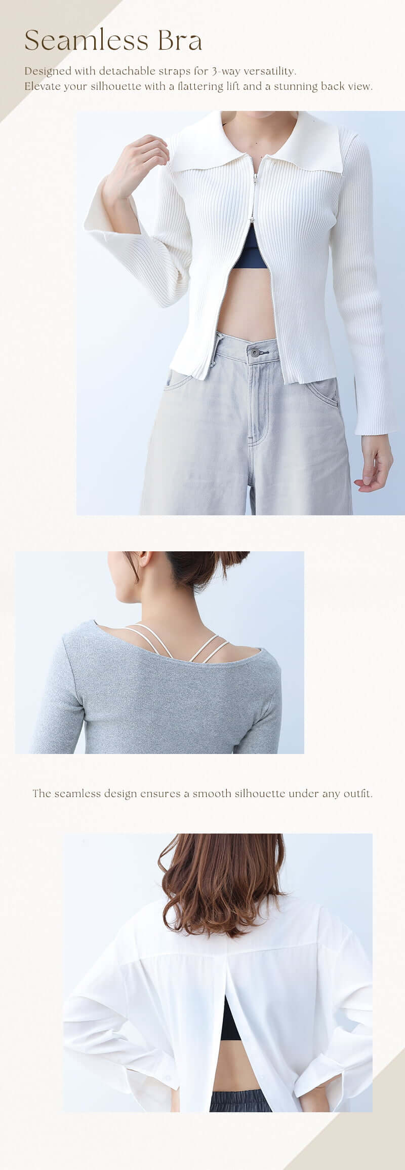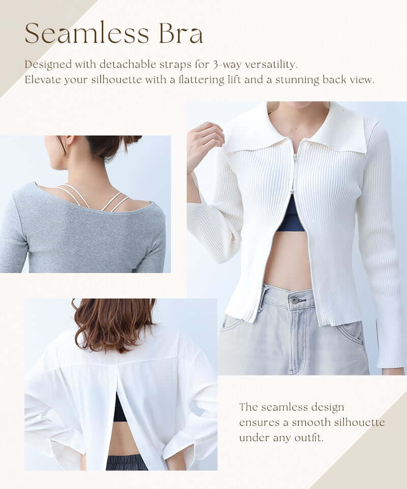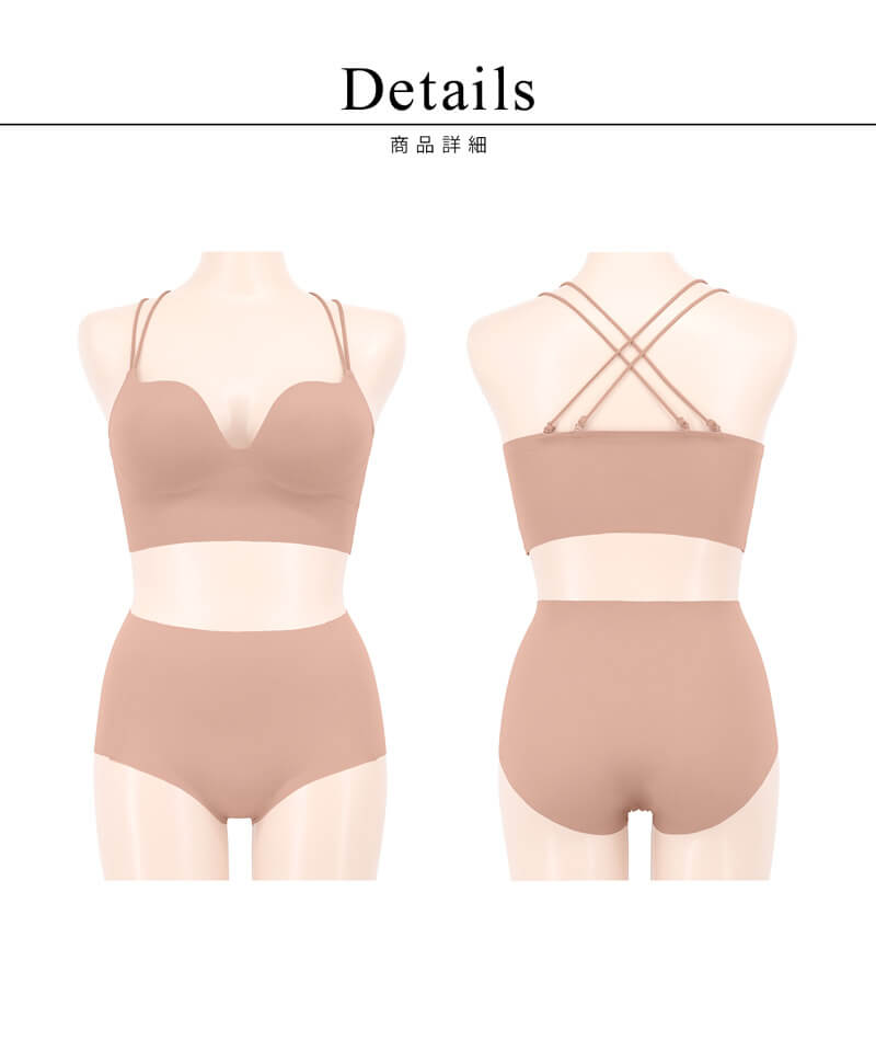 ストラップ取り外し:背面のみ取り外し可(3way仕様) ストラップ長さ調節:有り パッド取り外し:不可 ワイヤー:無し ホック:無し ブラ透け感:無し ショーツ透け感:無し 素材:ナイロン・ポリウレタン・その他