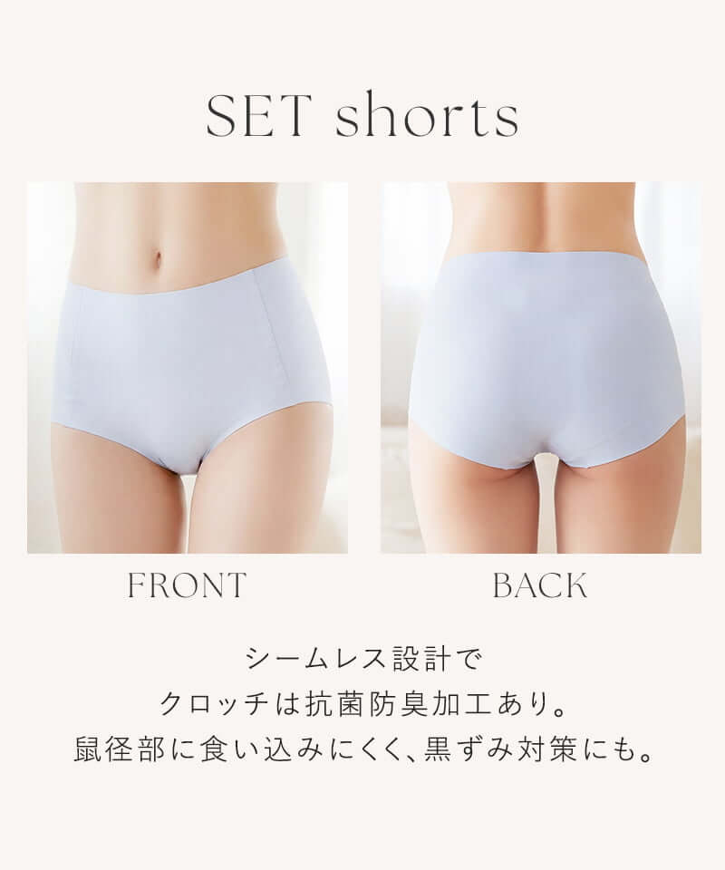 <ショーツ:ヒップ> M:87~95cm L:92~100cm XL:97~105cm ※ヒップサイズは目安となります。体型、着用感の好みによっても個人差がございますので予めご了承ください。