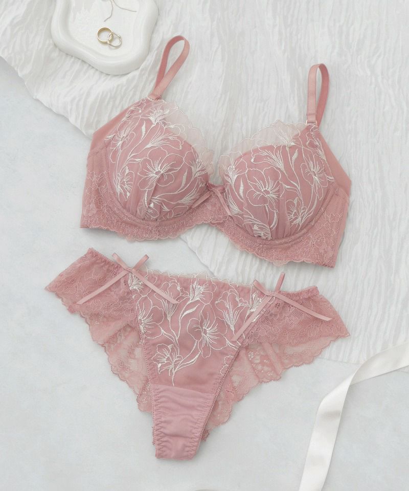 《限定カラー》Leene フルールシャワーカシュクールブラ&ショーツセット / 痛くない脇高谷間ブラ