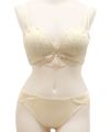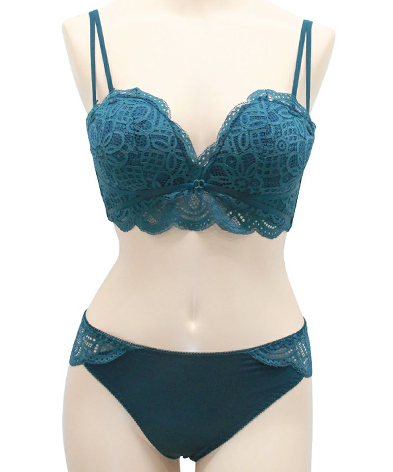 深く切り込んだカップは谷間を美しく見せ、主役のフラワーレースと共にバストを華やげます。