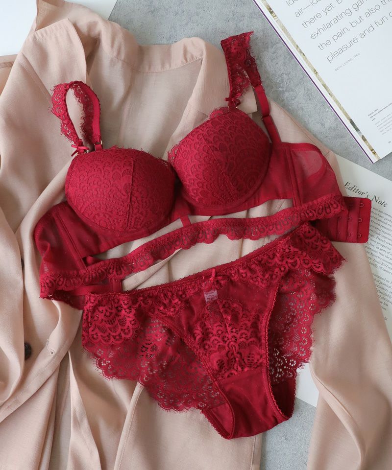 エロくてうっとり。 D70のワイン色を購入。158センチ、50キロで普段もD70。 ちょっと冒険する気分で購入しましたが大正解! ブラジャーの下に隙間があるのでどうかなぁ?と思ってましたが、全然気になることなく、安定感も問題なし。 出産、授乳後、しぼむし垂れるしで貧弱な胸になってましたが、しっかり谷間ができて、しかもスケスケレースのショーツでエロ可愛い。届いた時はこのショーツのスケスケ感に多少抵抗がありましたが、履いてみたらなんの問題もなくエロさにテンションが上がりました。