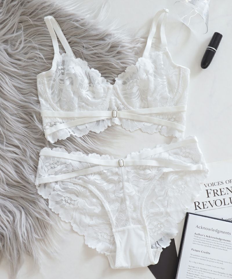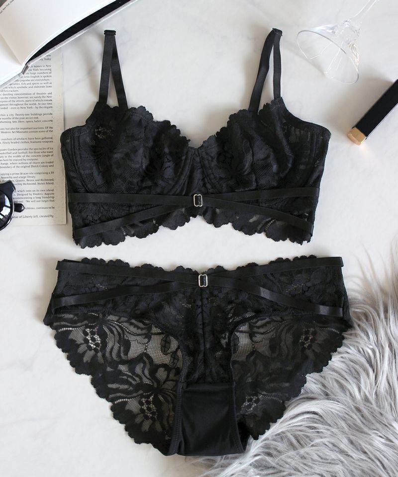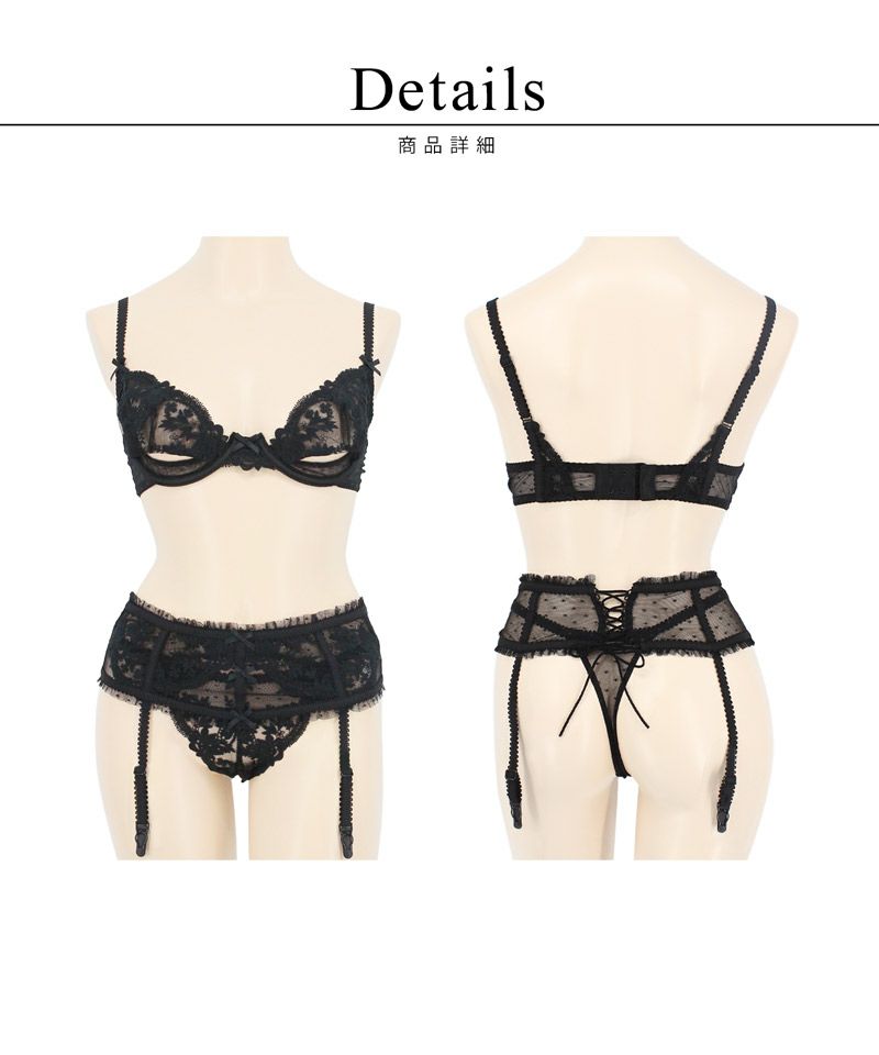 Leene ピオニーレースカシュクールブラ&ショーツセット