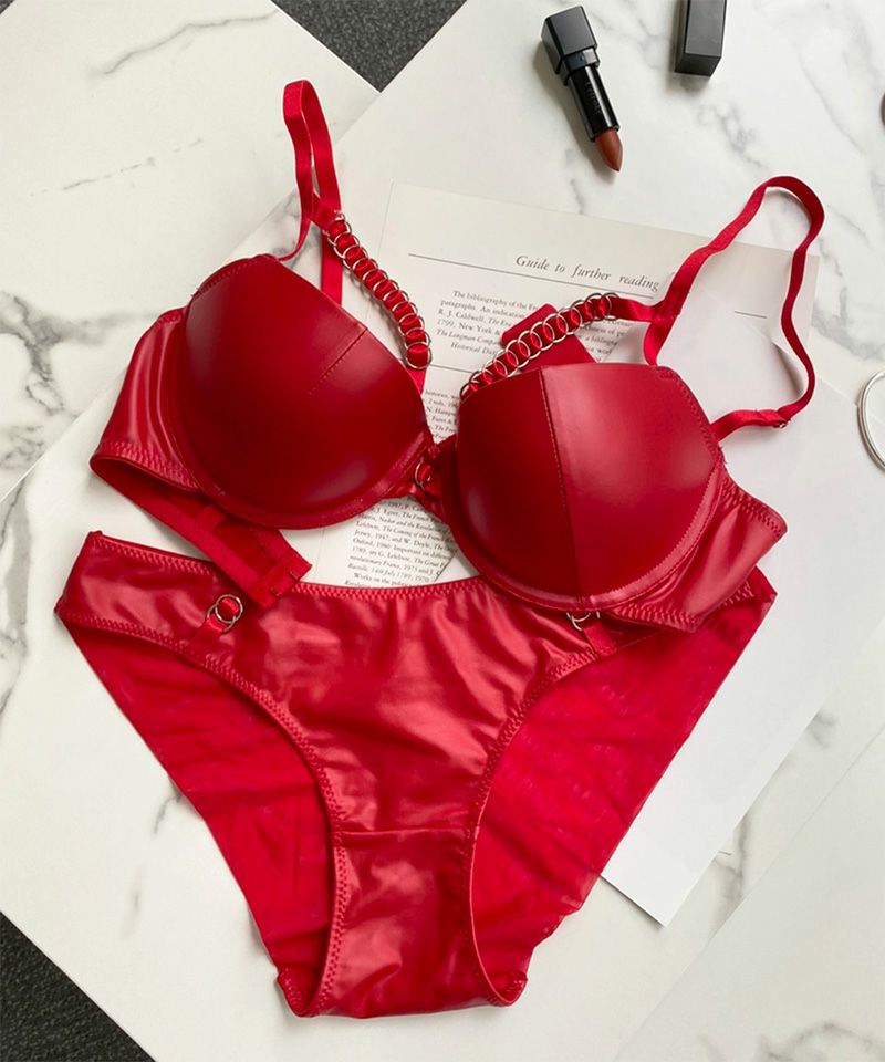 【Eカップ】レザーライクデュレロンブラ&ショーツ