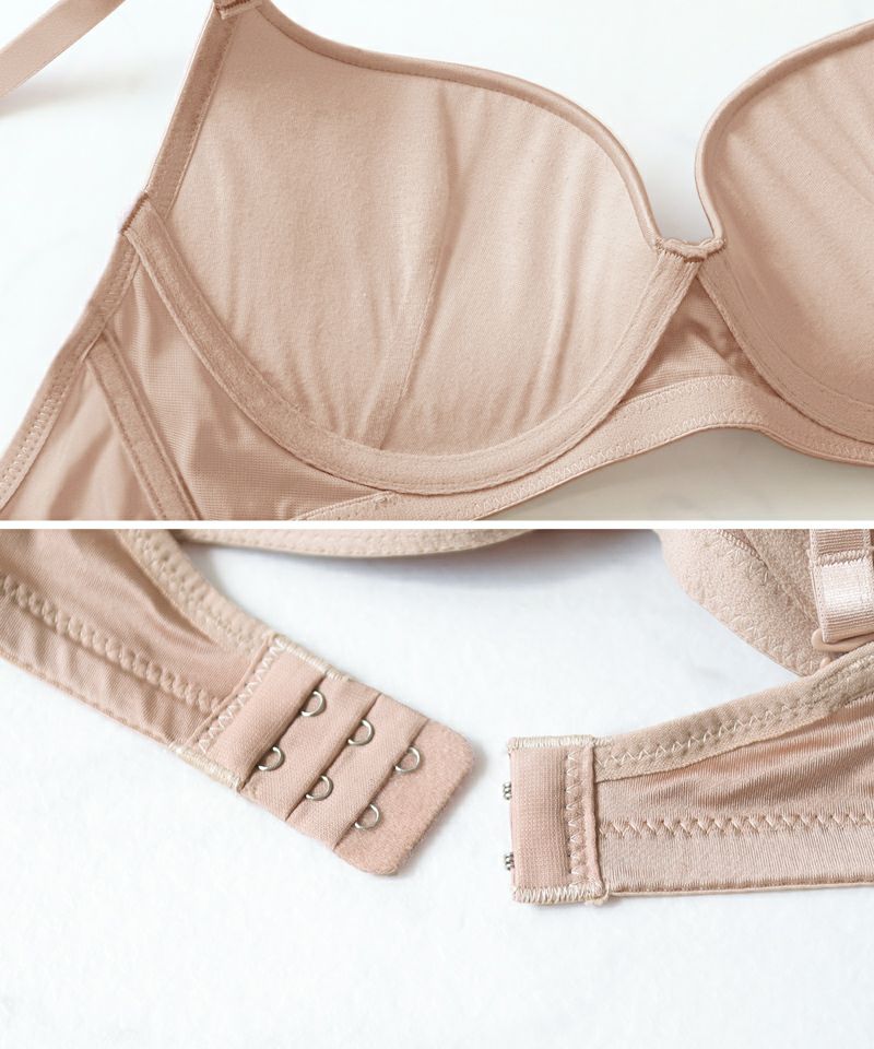 ホールド感があり少しアンダーきつめに感じました。B70だとバストが段になってしまい、1カップ上のC70でぴったり着用できました。カラー診断はイエベ春で、ヌードベージュよりスキンベージュの方が肌馴染みが良かったです。透けやすい肩紐部分もまったく透けず驚きました!