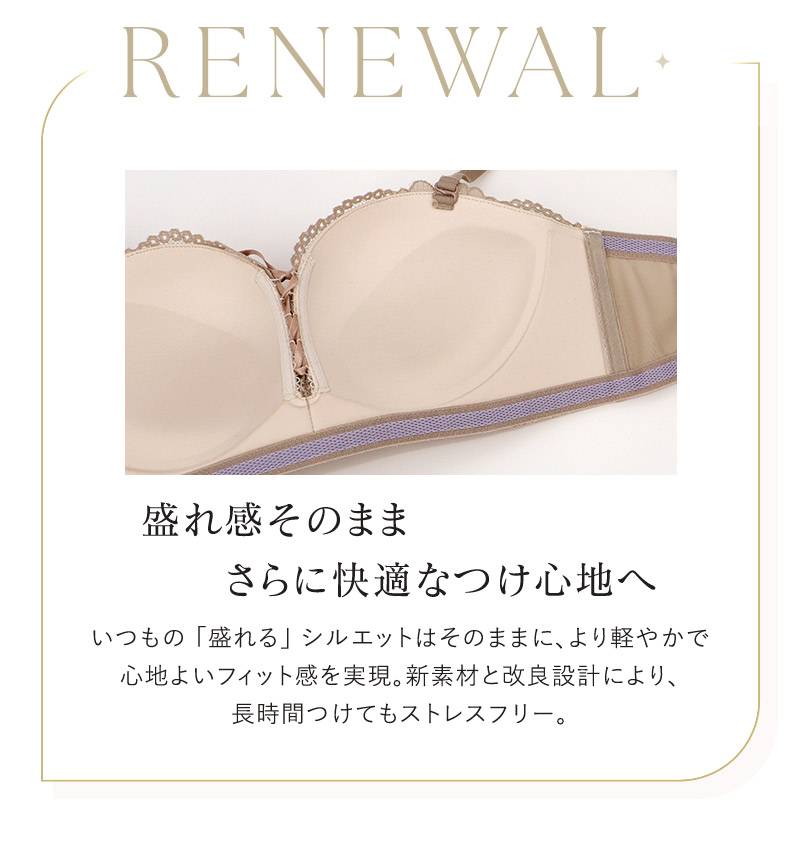 ストラップ取り外し:可 ストラップ長さ調節:可 パッド:あり(内蔵型) パッド取り外し:不可 ワイヤー:なし ホック(※A70/A75/B65/B70/B75/B80/C65/C70/C75/D65/D70/E65):3段4列 ホック(※C80/D75/D80/E70/E75/E80/F65/F70/F75):4段4列 透け感:なし 素材:ナイロン、ポリウレタン、その他 ブラジャー単品