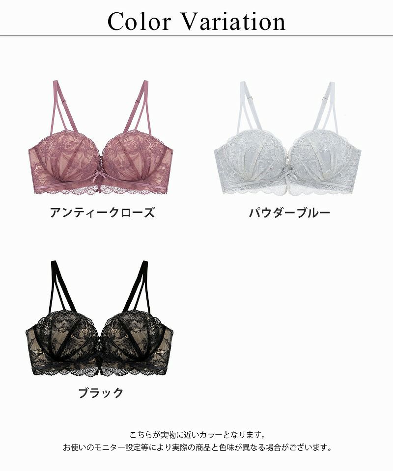 ストラップ取り外し:不可 ストラップ長さ調節:可 パッド:有(内蔵型) パッド取り外し:不可 ワイヤー:無し ホック:2段3列 透け感:無し