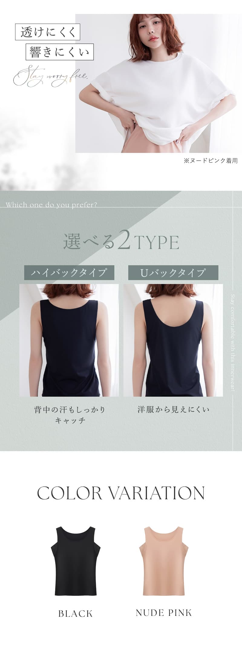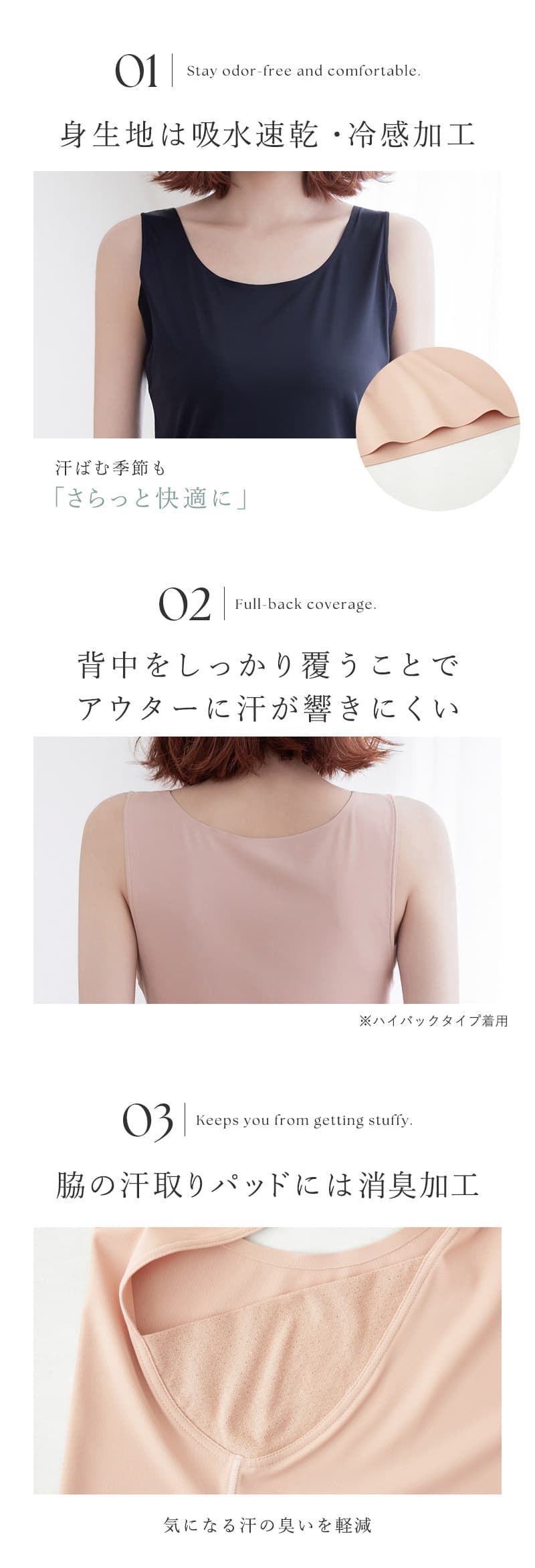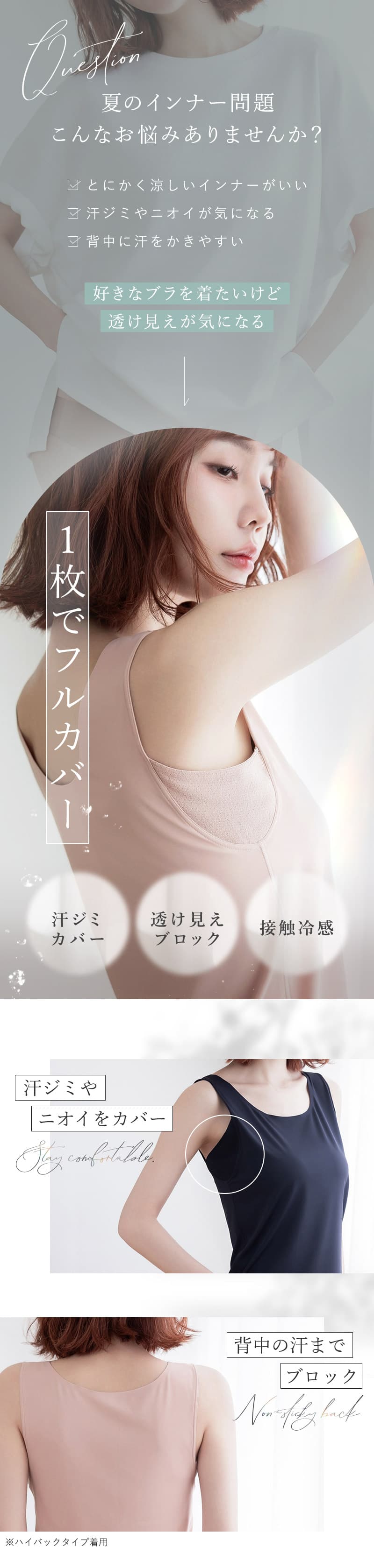 ハイバックタイプ 【S】着丈(前):41.5cm、着丈(後):47.5cm、裾幅:37cm 【M】着丈(前):42.5cm、着丈(後):48.5cm、裾幅:39cm 【L】着丈(前):43.5cm、着丈(後):49.5cm、裾幅:41cm 【XL】着丈(前):44.5cm、着丈(後):50.5cm、裾幅:43cm Uバックタイプ 【S】着丈(前):40cm、着丈(後):39.1cm、裾幅:37cm 【M】着丈(前):41cm、着丈(後):40.1cm、裾幅:39cm 【L】着丈(前):42cm、着丈(後):41.1cm、裾幅:41cm 【XL】着丈(前):43cm、着丈(後):42.1cm、裾幅:43cm ※平置きサイズはスタッフが採寸した実寸値となり、若干の誤差が生じる場合がございます。 ※実際の着用感には個人差がございます。