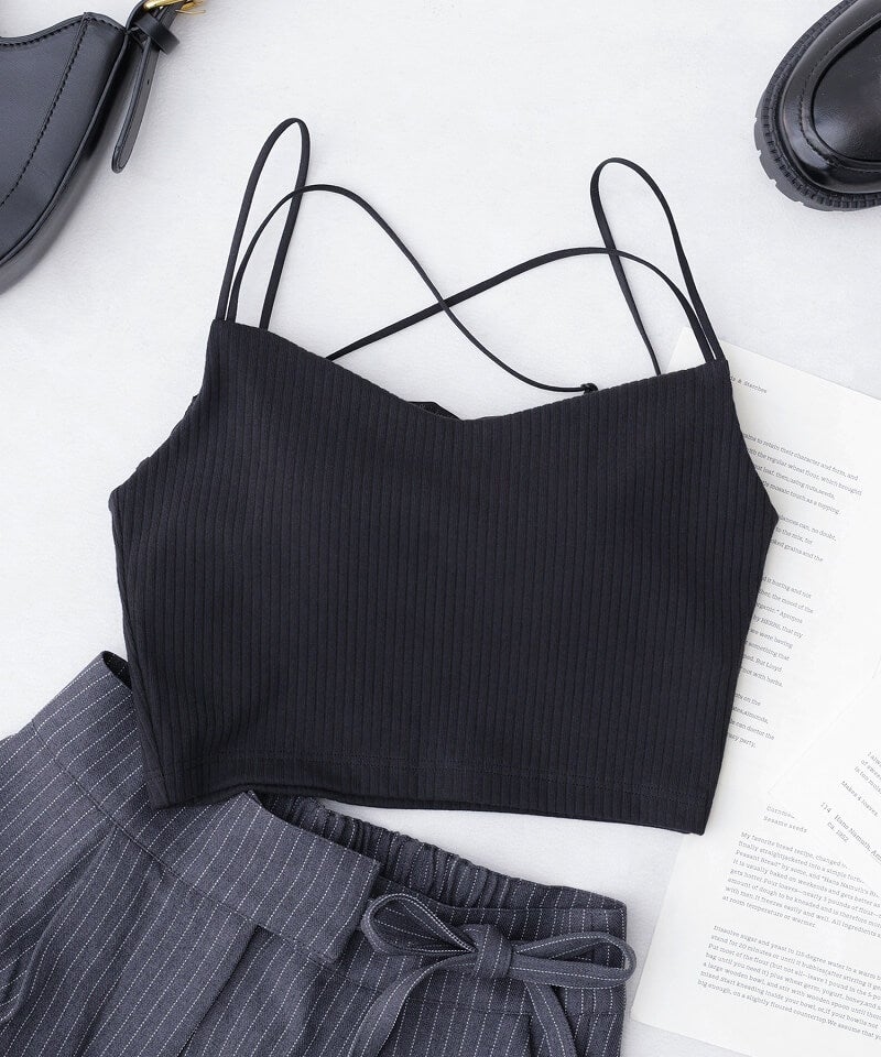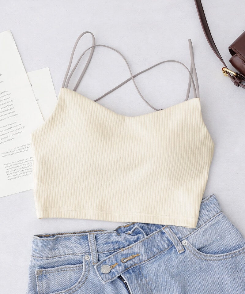 リブツインストラップモーニングルーティンブラトップ