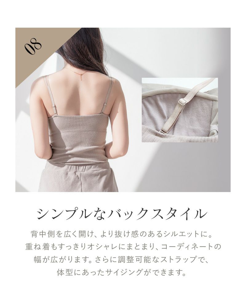 ストラップ取り外し:不可 ストラップ長さ調節:可 パッド取り外し:不可 ワイヤー:なし 素材:綿、ポリウレタン、その他 キャミソール+ショートパンツ / 計2点セット