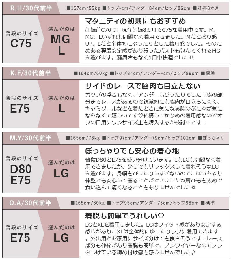 はい、基本的には普段お使いのブラサイズを目安にお選びいただけます。