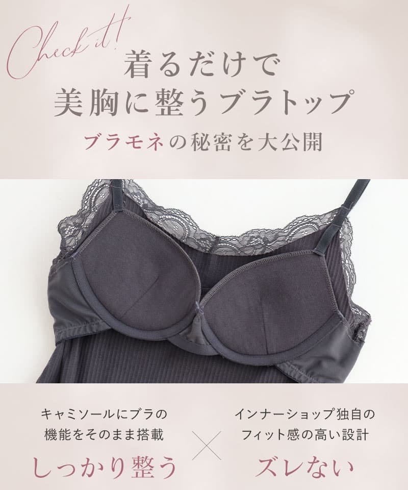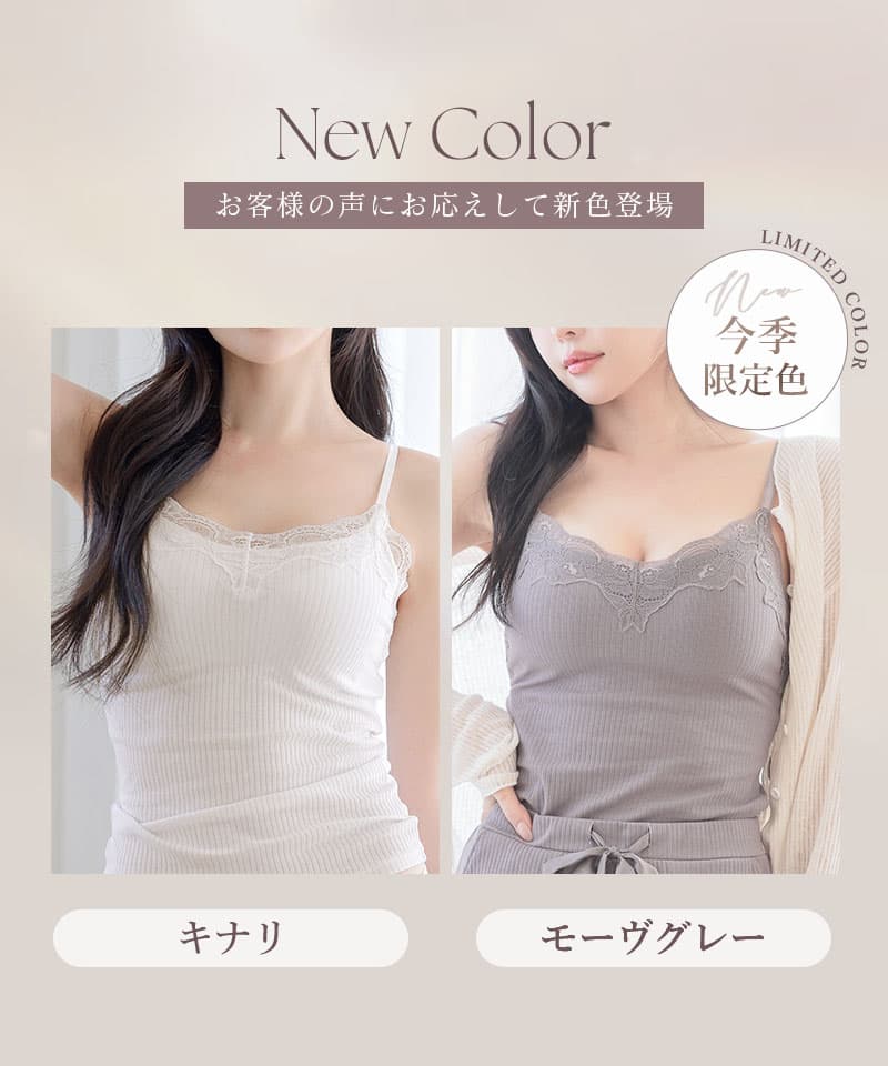 ストラップ取り外し:不可 ストラップ長さ調節:可 パッド取り外し:不可 ワイヤー:無 素材:コットン、ポリウレタン、その他 キャミソール単品 ※常に商品改良を行っており、ご購入いただくタイミングにより仕様や着用感が若干異なる場合がございます。 ※キナリは、カップの裏の配色をリニューアルし、透けにくさを向上させました。